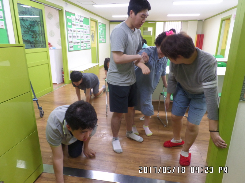 1층에서는 자세를 낮게 엎드려 연기를 맡지 말고 신속히 외부로 대피하는 훈련을  하였습니다.