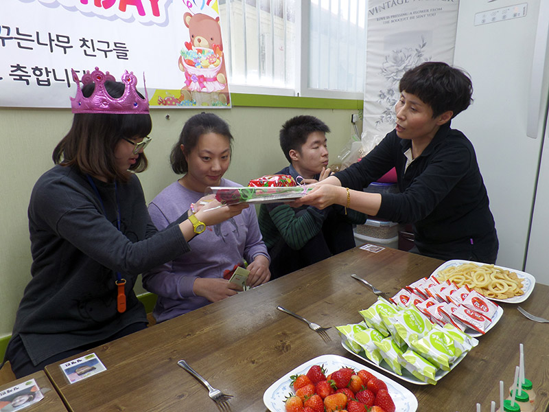 동료이용인분들께 생일축하를 받으며 매우 행복한 시간을 보냈답니다.