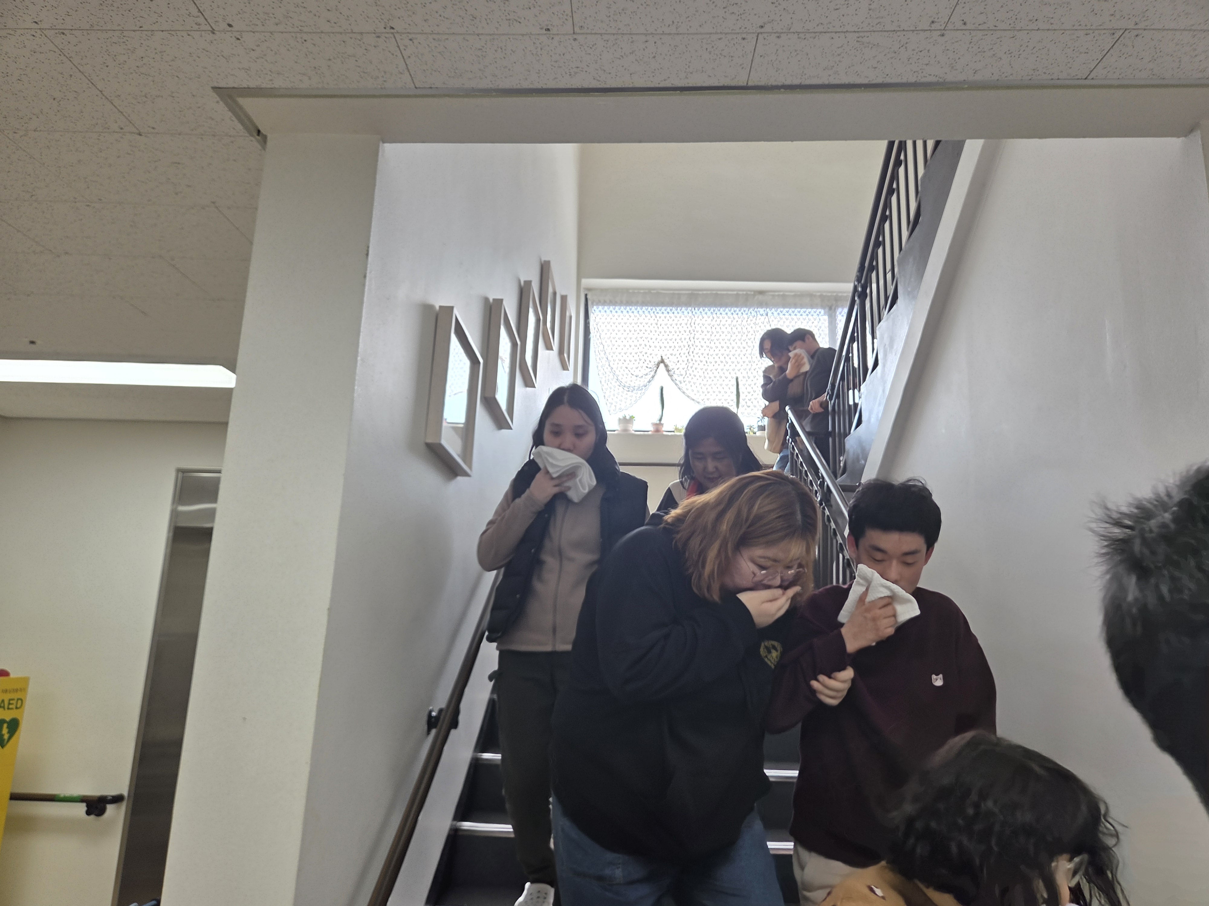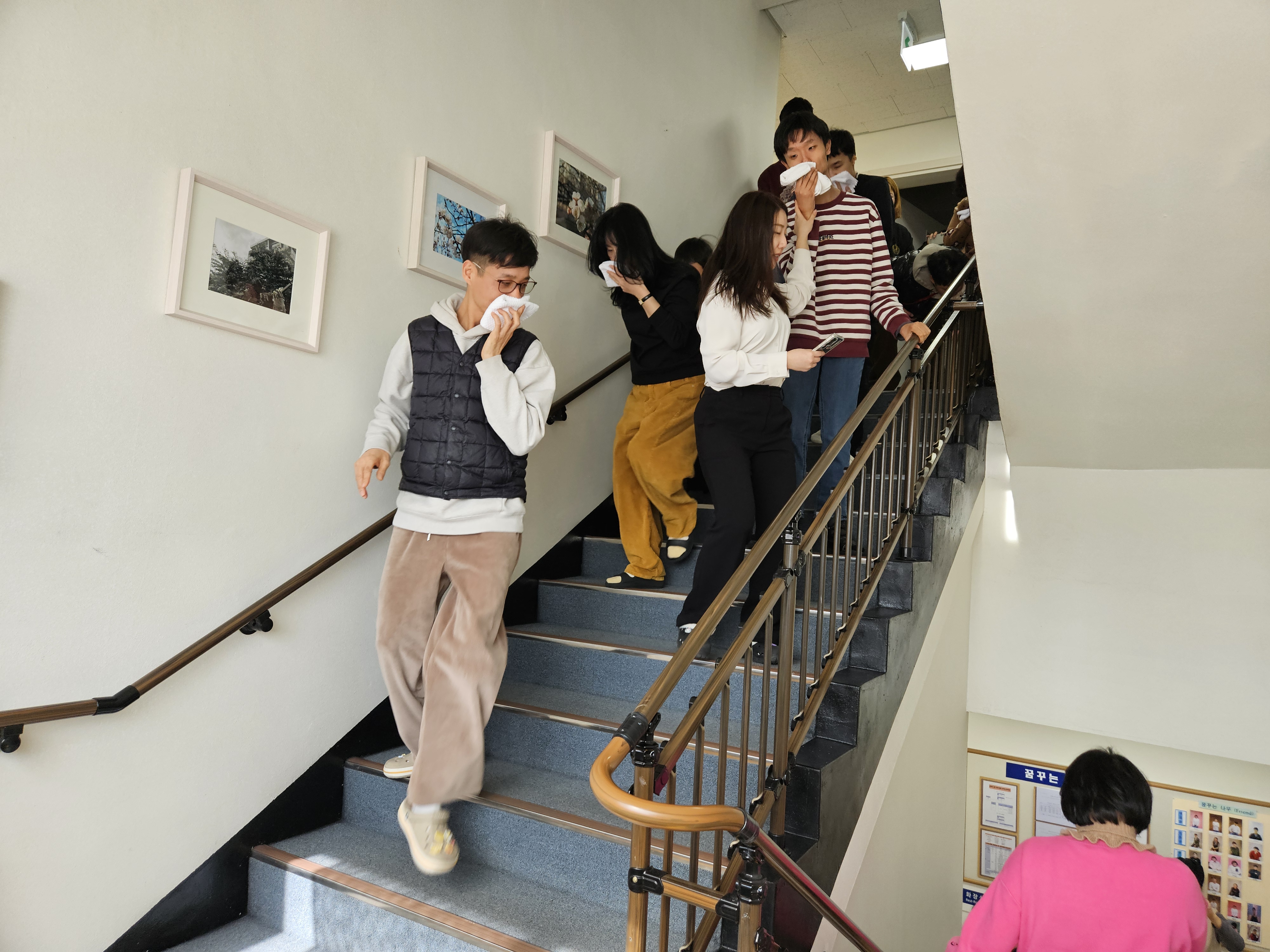 모두 질서를 잘 지켰고 코와 입을 잘 막고 빠르게 대피하였습니다.