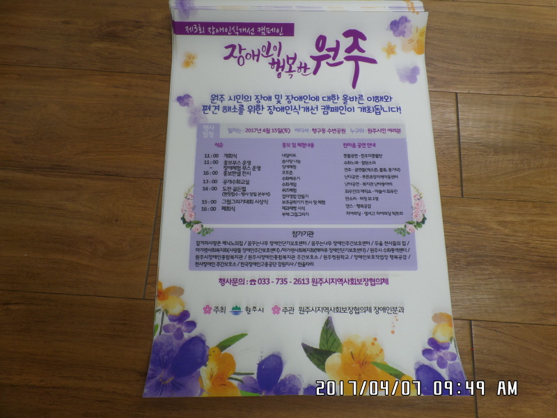 원주시 주최, "제3회 장애인식개선 캠페인" 개최안내