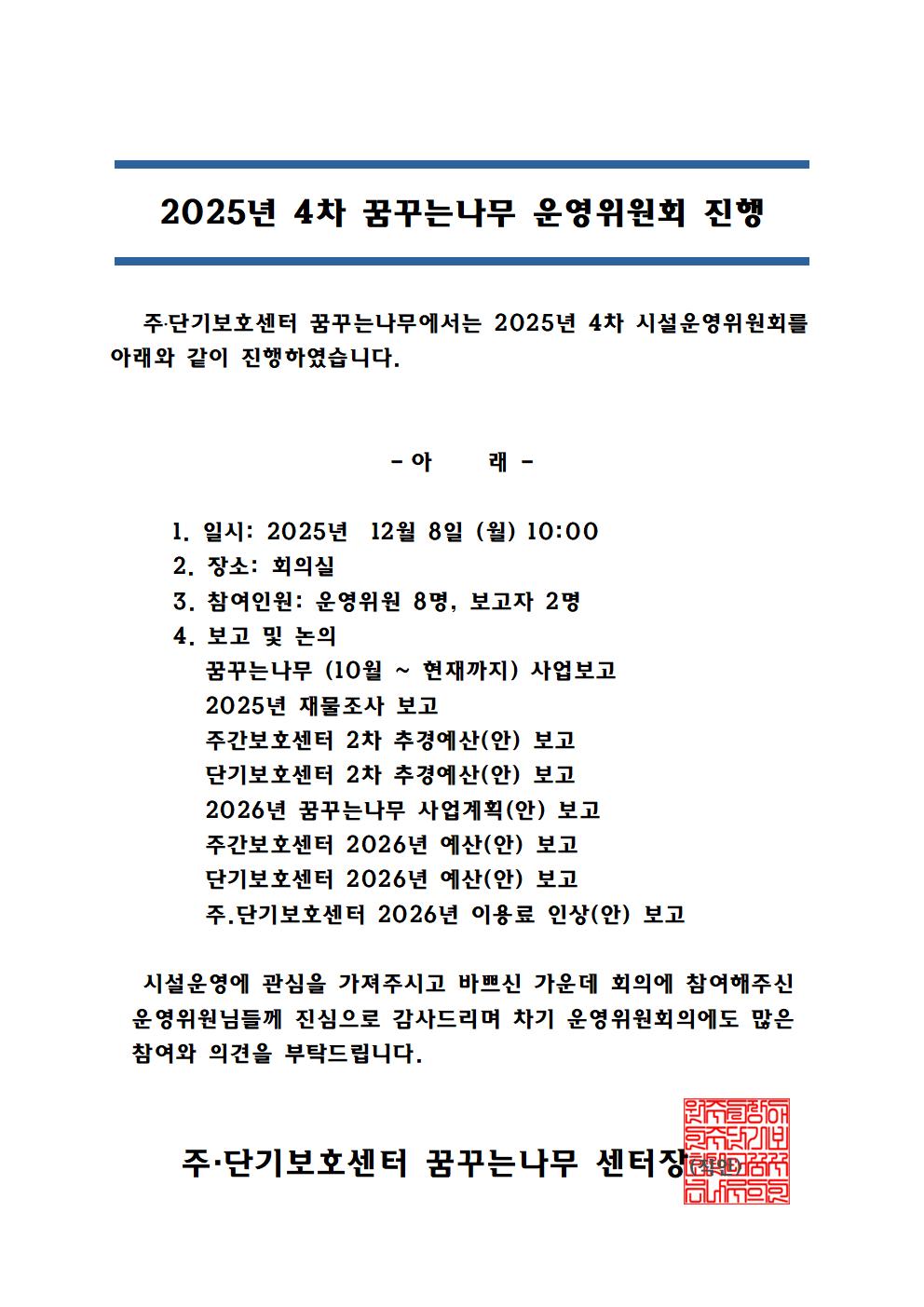 2025년 4차 꿈꾸는나무 운영위원회 진행