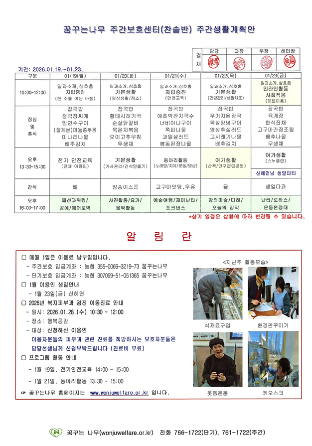 • 주간계획안