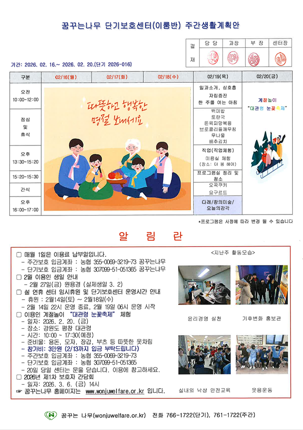 이룸, 새길반 주간계획안(2026.02.19~2026.02.20)