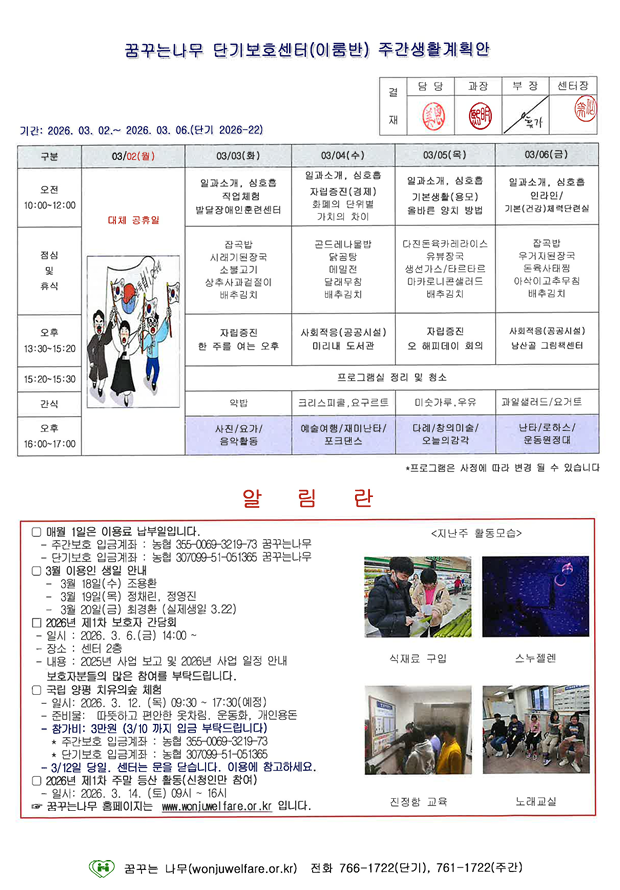 이룸반, 새길반 주간계획안(2026.03.03~03.06)