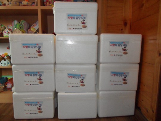 첫눈이 너무 싱겁게 내린 겨울입니다. 겨울이 겨울 다워야 내년 농사에 도움이 될 텐데요 참 눈이 그리운 겨울입니다. 우리 센터에 눈만큼 반가운 소식이 있네요 한라건설에서 김장을 담아 주셨습니다. 경기가 어려워 힘들어졌다 해도 마음을 나누는 손길은 언제나 한결 같습니다. 맛있는 김장이 이렇게나 많이 ^^ 감사합니다.