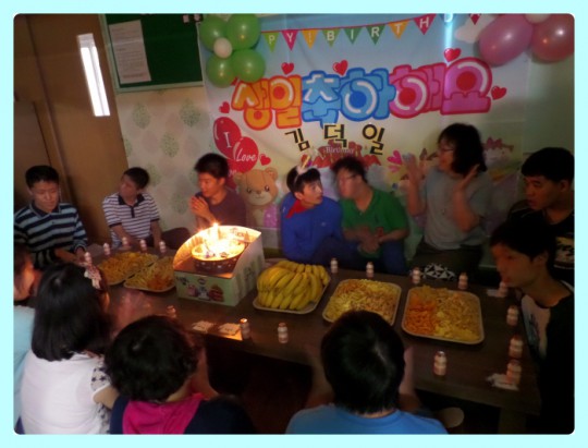 우리센터 멋쟁이 미소천사 덕일의 생일입니다 어머니가 미리 준비해주신 맛있는 케익도 나누어 먹고 선생님들이 준비한 생일장식과 선물을 받고 좋아서 싱글벙글입니다. 지금처럼 언제나 행복하고 건강하게 잘 자라주길 바랍니다. 덕일아 생일 축하해~~~^^