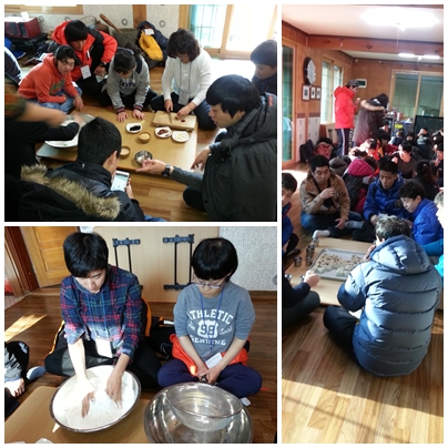 몸에 좋은 산야초 떡 만들기 체험을 하였습니다. 쏭쏭쏭~~ 대추랑 밤 석이벗석까지 썰어넣고 막걸리와 팥물로 물을내려 찐 약초 백설기는 천연떡으로 맛도 달달~ 아주끝내줬답니다.
