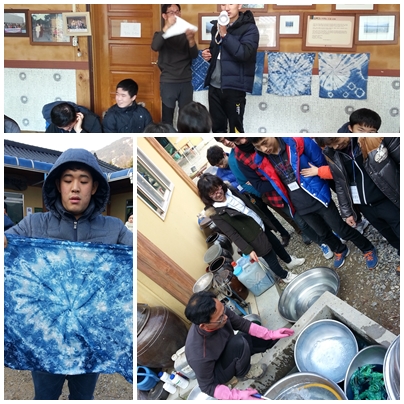 손수건에 예쁘게 천연염색을 하였습니다. 고무줄로 감고 젖가락을 또르르 말아서 .. 예쁜 꽃 모양도 만들고 담그고 헹구고 또 담그고 ... 짜~안 내마음만큼이나 푸른 가을색으로 물든 손수건 .. 세상에 단하나 나의 작품입니다