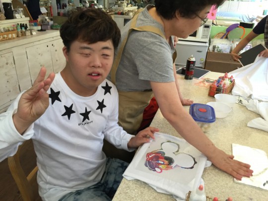 완성한 티셔츠는 바로 입어보고 기념사진 찰칵!!! ㅋㅋ