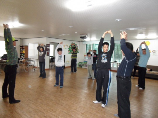밖에 비가 오거나 추우면, 2층에서 지상훈련을,