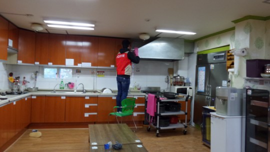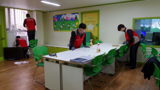 1층 프로그램실 창문틀과 유리창을 신문과 매직블럭과 물걸레를 이용하여 청소를 하고, 1층 체력단련실 바닥에 깔아 놓은 매트를 먼지를 털고 물걸레로 닦고 장판 바닥과 운동기구를 옮겨 먼지제거 등 센터 구석 구석 깔끔하게 청소를 해주시고 TV, 에어컨을 후원도 해주셨습니다. 꿈꾸는 나무가 반짝반짝 윤이나서 상쾌한 기분으로 시작합니다. 롯데하이마트 샤롯데 봉사단 여러분께 정말 감사드립니다 ~