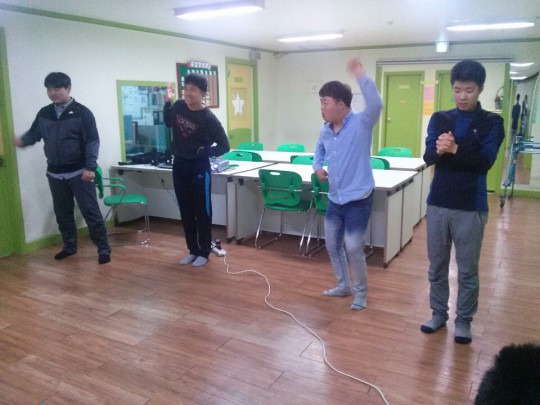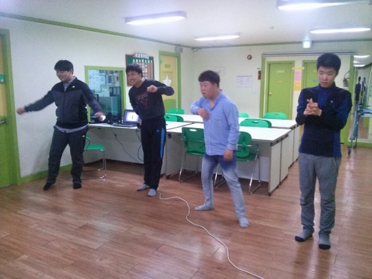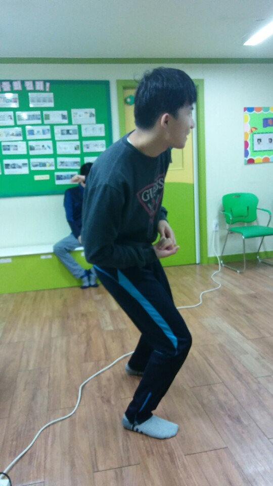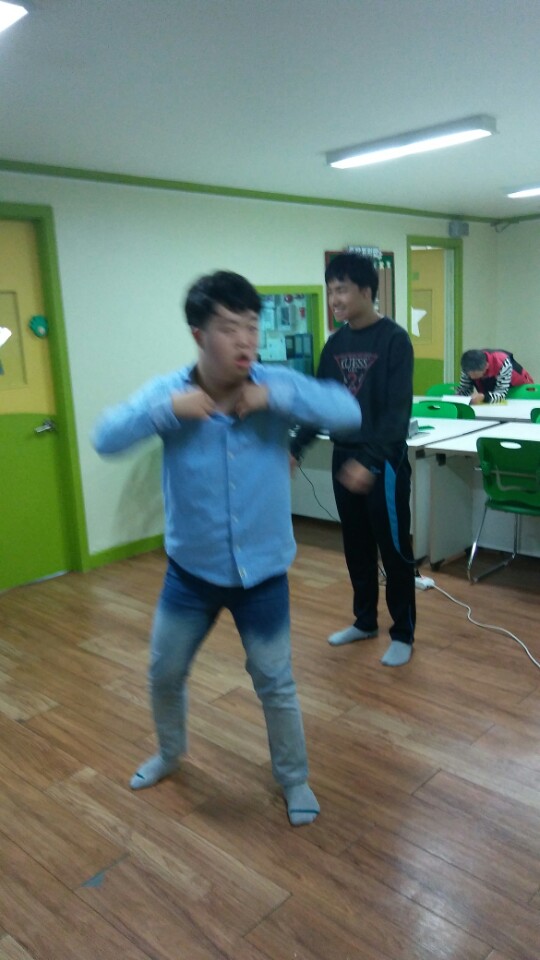 에어로빅 동영상을 보며 "나성에 가면" 노래에 맞춰 에어로빅을 했습니다. 처음 동작을 배울 때는 다들 관심 없는 표정이더니 이게 왠일인가요 흥겨운 노래가 나오자 다들 즐거워 하며 격한!! 춤(?) 을 추었습니다. 잠깐 쉬는 시간에 친구들이 좋아하는 노래를 틀어주었더니 다들 너무 즐거워 춤을 춥니다. 그렇게 한시간이 넘는 시간 친구들도 저도 아침이라는 사실도 잊고 신나게 흥겨운 댄스파티를 즐겼습니다.