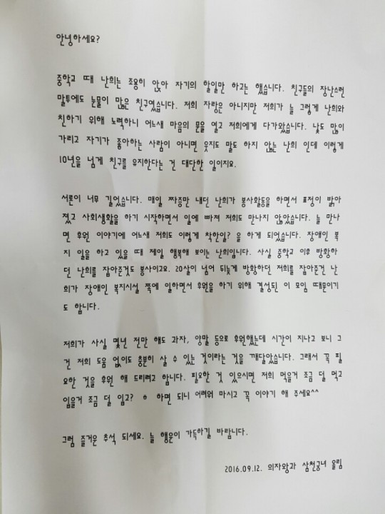이번에는 마음이 담긴 예쁜편지도 보내주셨습니다.