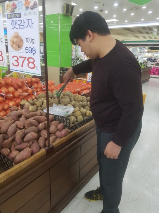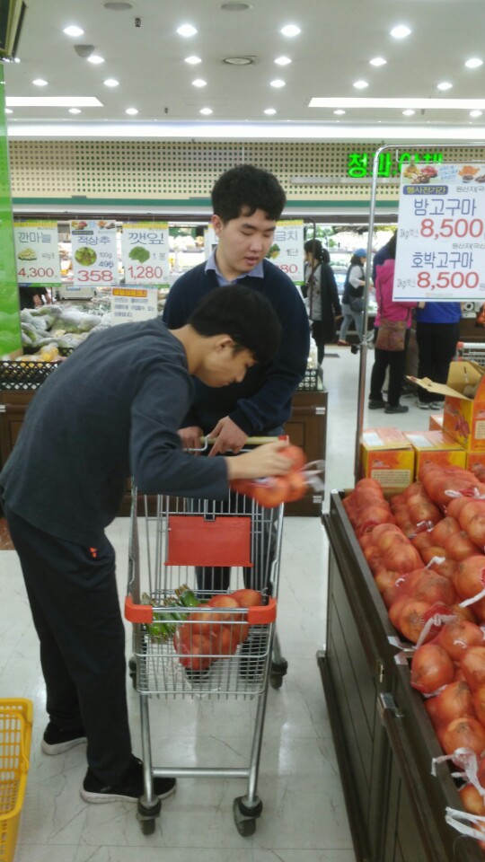가온반 친구들의 사회적응 프로그램인 "마트이용하기"활동이, 봄햇살 가득한 오늘 진행되었습니다. 각자 구입할 물품을 잘 기억하여, 진열된 장소를 찾아갑니다. "감자가 어떤 것이 좋지?" "파는 큰 것으로 두단 넣자" "양파도 좋은 것으로 카트에 넣어야지" 가온반 친구들 덕분에 센터 친구들이 신선한 식재료로 만든 음식을 먹을 수 있겠네요~ 고마워요 가온반 친구들~