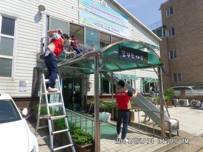 망가진 창틀과 방충막을 교체하는 고난도의 작업도 하이마트 임직원과 함께