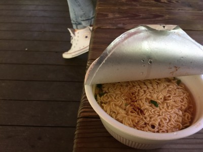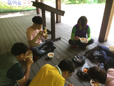센터에서 준비한 김밥과 산악회에서 준비한 라면, 그리고 시원한 음료와 커피까지