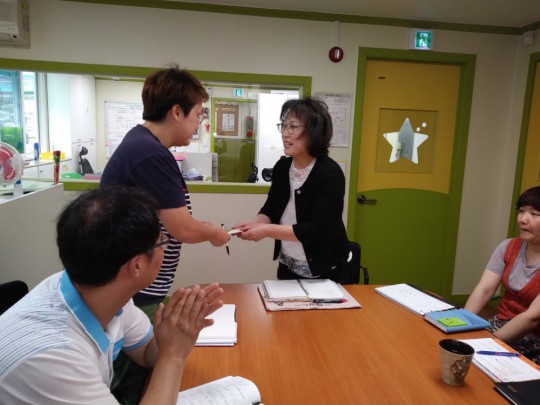 2017년 05월 모범직원에 가온반 유난희 선생님이 선정되셨습니다. 이용자분들을 위해 항상, 밝은 미소로 프로그램 활동을 진행해 주시며 센터의 궂은 일도 마다하지 않고 솔선수범 도맡아 처리해주시는 선생님.. 고맙습니다... 앞으로도 선생님의 멋진 활약을 기대해 봅니다~화이팅~