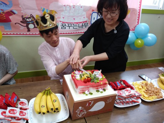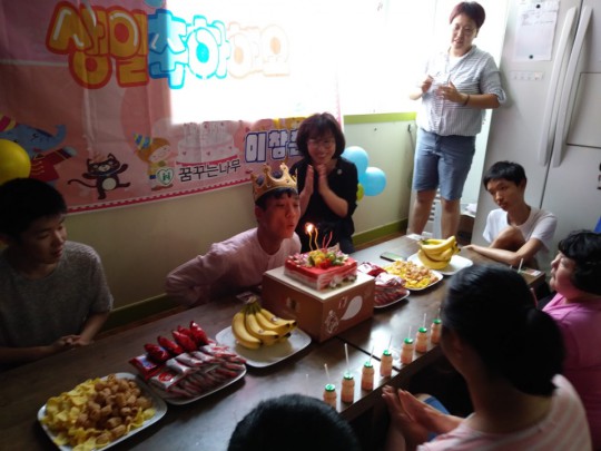 센터의 맏이, 이창훈씨의 생일파티가 오늘 센터에서 진행되었습니다. 많은 이용인분들께 생일축하편지를 받았고 축하메시지도 받았습니다.. 어머님께서도 함께 참석해 주시어 자리를 빛내 주셨습니다. 고맙습니다.. 창훈씨 이제 31살이 되었으니, 더욱 성숙한 사회인으로 거듭나시길 바랄께요.. 창훈씨 ~생일 축하해요~