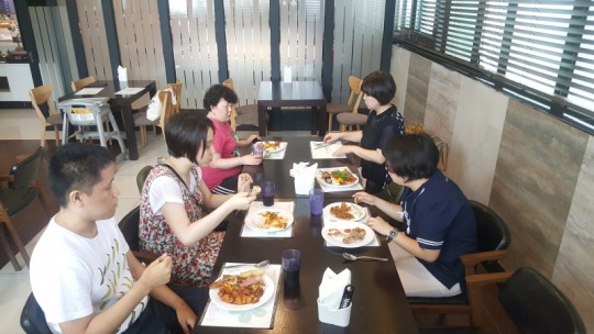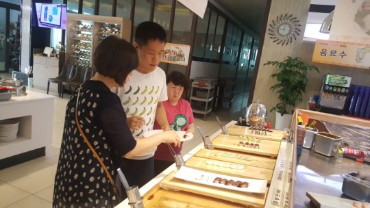 자신이 결정한 뷔페 에서 자유롭게 먹고싶은 음식을 선택하여 접시에 담아 맛있게 식사를 하고 이용자 모두 밝은 모습으로 지역시설 예절을 배우며 활동에 대해 만족해 하였습니다.