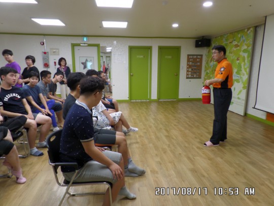원주소방서와 연계한 소방교육이 오늘 실시되었습니다. 화재발생시 행동요령에 대한 주제로, 화재발생 예방요령, 발화초기의 안전조치, 화재신고 방법, 화재발생시 행동요령으로 피난유도와 대피요령, 불이 난 건물내에 갇혔을때 행동요령에 대한 교육을 진행해 주셨습니다. 이용자분들께 많은 도움이 되었으며 직접 교육을 진행해 주신, 단구119 안전센터 이규인 센터장님께 감사드립니다.