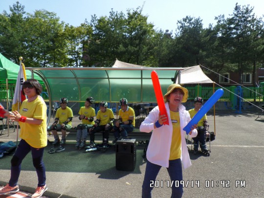 인라인대회가 끝난뒤 레크레이션을 하며 흥겨운 시간을 보냈고