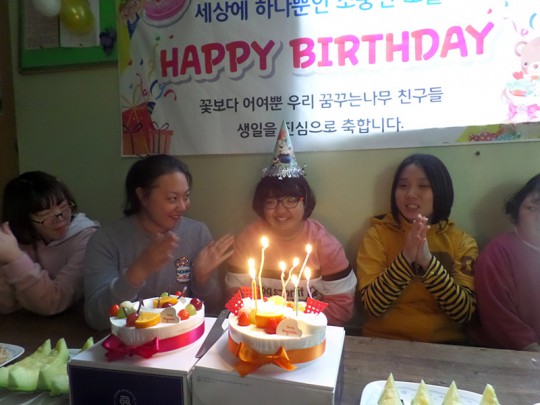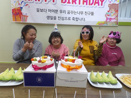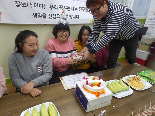 11월 생일파티가 23일, 24일 진행었습니다. 멋진 청년의 모습이 되어가는 이도훈씨와 예쁜 숙녀의 모습이 보여지는 이다솜씨였답니다.. 동료 이용인분들에게도 축하를 받으며 즐거워하였고 어머님께서 준비해주신 케익과 센터에서 준비한 다과를 먹으며 행복한 시간을 보냈답니다.. 두분 모두 생일을 진심으로 축하드려요~~