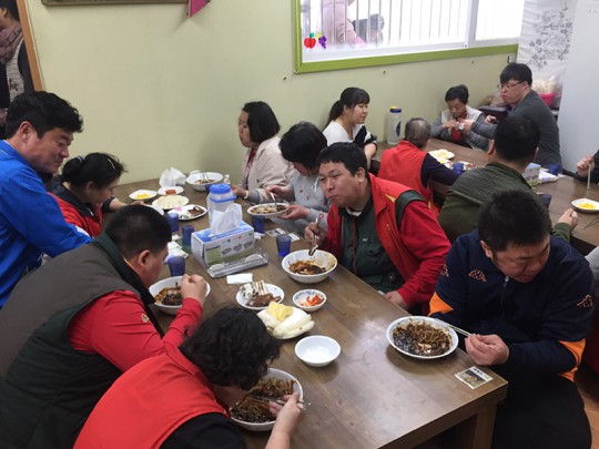 바르게살기 단구동위원회와 함께 하는 "더불어 먹는 자장면데이"가 진행되었습니다. 꿈꾸는나무와 이웃하고 있는 경로당 어르신과 보호작업장 행복공감 이용인, 천사주간보호센터 이용인 그외 지역주민과 함께 맛있고 푸짐한 자장면을 나누어 먹었습니다. 한달에 한번 자장면을 나누는 소박하고 정겨운 파티.. 도움주신 바르게살기 단구동위원회 회원여러분 언제나 감사드립니다. 5월에 또 만나요~~~ ^^
