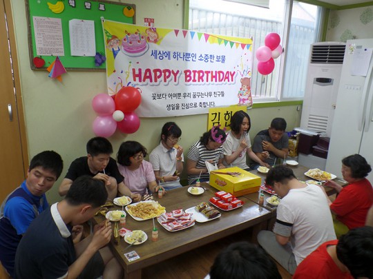 김한울씨의 생일파티가 6월8일 진행되었습니다. 센터 이용인분들께 모범을 보이고 있는 한울씨~ 생일축하를 받으며 환하게 미소지으니 오늘 더욱 예쁩니다^^ 한울씨~ 그룹홈에서 생활할 수 있도록 열심히 노력합시다~ 그리고 진심으로 생일 축하해요~~