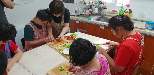 매미소리 아련하게 들리는 한여름.. 시원한 콩숙수 한사발이 간절히 생각나는데요~ 8일 나래반 친구들의 콩숙수 만들기 가사활동이 있었답니다. 고명으로 올릴 오이도 썰고, 삶은 달걀 껍질도 벗기고 삶은 국수를 찬물에 헹구어 예쁘게 사리를 만들어 봅니다. 서툴고.. 힘들었지만 직접 만든 콩숙수의 맛을 어디에 비교할 수 있을까요.. 함께 맛있게 먹은뒤 마무리 설거지도 함께 하며 자립생활에 대한 의지를 다질 수 있는 시간이었답니다 ^^