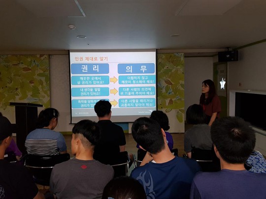 하반기 인권교육이 8월16일 진행되었습니다. 인권감수성 훈련을 시작으로 인권이 무엇인지, 권리와 의무가 무엇인지, 인권을 지키는 방법에 대해 알 수 있는 소중한 시간이었습니다. 교육을 진행해주신 강원도장애인종합복지관 임형열 강사님께 감사드립니다.