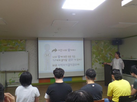 2018년 하반기 성교육이 8월22일 진행되었습니다. 성적자기결정권이 무엇인지, 다양한 스킨십 상황에서 동의를 구하는 연습을 직접 해보며, 다른 사람의 성적자기결정권도 중요하고 존중해 주어야 함을 알 수 있었답니다. 귀에 쏙쏙 들어오도록 명쾌한 교육을 진행해주신 원주시청소년성문화센터 공성인 강사님께 감사드립니다.