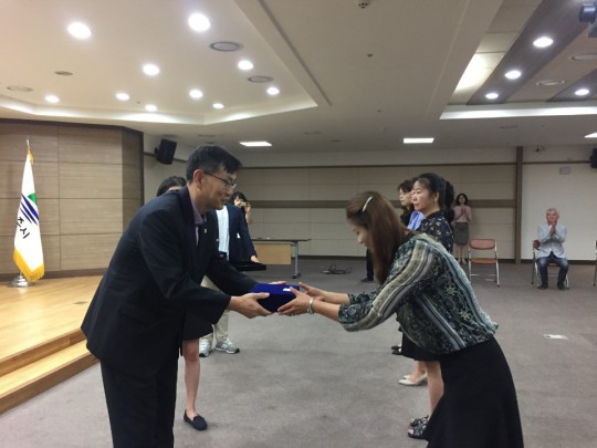원주시장애인복지시설의 발전과 종사자간의 화합을 위한 제5회 원주시장애인복지시설 종사자 연찬회가 9월5일부터 7일까지 진행되며, 꿈꾸는나무 단기보호소 손정옥 선생님께서 원주시장상을 수상했습니다. 이용인분들을 항상 존중하며 이용인 중심지향 서비스를 제공하고 계신 선생님~ 수상을 진심으로 축하드립니다^^