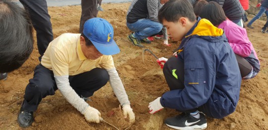 원주역사박물관에서 진행하는 조엄기념관 고구마 캐기