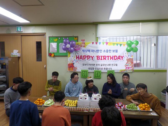 항상 맑은 미소로 타 이용인을 배려해주는 이다솜씨의 생일파티가 11월22일 진행되었습니다. 이용자분들의 축하도 받고, 생일선물을 받으며 행복한 생일파티를 보냈답니다. 마음도 예쁜 다솜씨~ 건강하고 행복하세요~ 생일 축하합니다~