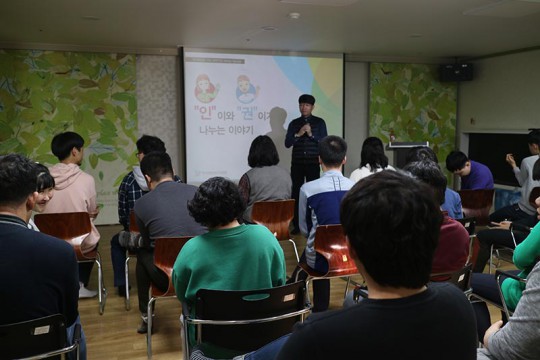 이용자 인권교육이 2018년 11월 26일 진행되었습니다. 나의 권리에는 어떤 것들이 있는지 알 수 있었고, 타인의 권리는 존중하고 배려해야 한다는 것을 알 수 있었답니다. 귀에 쏙쏙 들어오도록 열정적인 강의를 진행해 주신 한국장애인복지시설협회 인권지킴이지원센터의 이준엽 강사님께 깊은 감사를 드립니다.