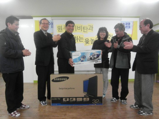 키비탄 원주클럽에서 한아름 따뜻한 선물을 주셧습니다. 안그래도 청소기가 오래되어 너무 힘들어 했는데 "초강력" 청소기와 "초고화질"의 텔레비젼! 우리 꿈꾸는 나무 열매들의 정서함양을 위한 프로그램에 유용하게 쓰일 많은 것들을 주셨지요 주는마음, 받는 마음 뭐가 그리 좋은지 모두 활짝 웃는 얼굴입니다.*^^* 선물을 주셔서라기 보다 좋은 날에 기쁜 마음을 함께 나눌 수 있어 행복했습니다. 모두 모두 환영하고 사랑합니다.