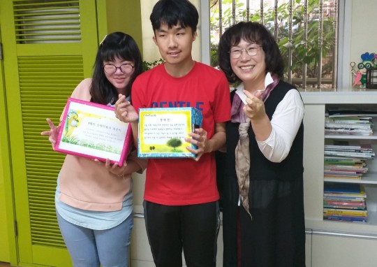 5월 모범이용인으로 정영진씨와 정은비씨가 선정되었어요 "짝짝짝...." 우리 은비씨 무척이나 기뻐하고 즐거워합니다. 영진씨는 볼빨간 사춘기처럼 수줍은 미소로 기쁨을 표현하네요 우리 모두 정영진씨와 정은비씨를 축하합시다~~