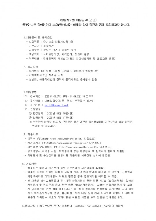 2023년 꿈꾸는나무 단기보호센터 생활지도원 채용공고(긴급)(긴급)