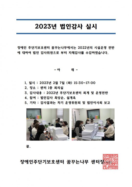 2022년 시설운영 전반에 대한 법인감사 실시