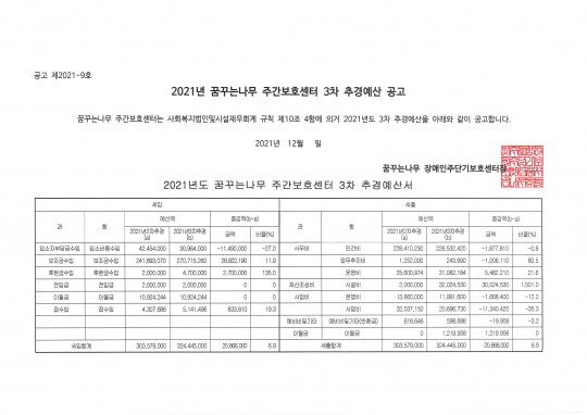 꿈꾸는나무 주단기보호센터 3차 추경예산 공고