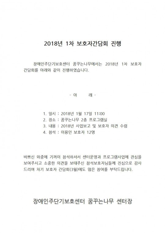 꿈꾸는나무 2018년 1차 보호자 간담회 진행