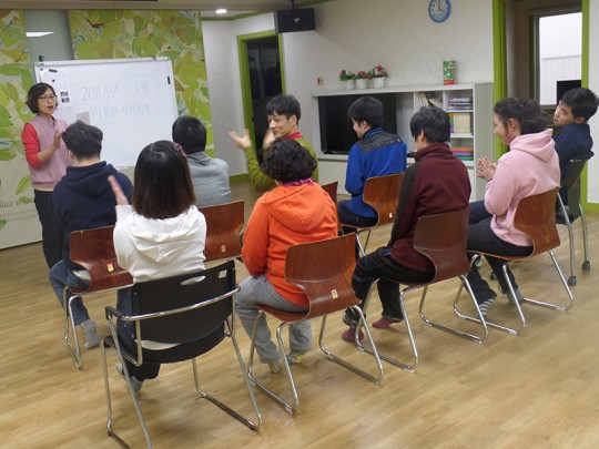 <단기보호> o 일 시 : 2018년 01월 31일(월) o 장 소 : 2층 프로그램실 o 참 석 자 : 단기 이용자 9명 o 회의내용 1. 당월 논의 안건 1) 2018년 반장, 부반장 선출 2) 2018년 나의 개별지원목표 알아보기 3) 2018년 다른 이용인을 위해 내가 할 수 있는 일 4) 기타건의사항 o 회의결과 1. 2018년 반장, 부반장 선출 -정은비씨 4표 획득 -조영빈씨 2표 획득 -최경환씨 1표 획득 *반장 : 정은비씨, 부반장 : 조영빈씨 2. 2018년 나의 개별지원목표 알기 -김하늘씨 : 운동을 통해 건강 관리방법 익히기, 깨끗하게 양치질 하기 -김한울씨 : 비만관리를 통해 건강한 몸과 자신감 갖기, 용모를 단정히 하기 -이도훈씨 : 침흘리지 않기, 타인에 대한 배려감 갖기 -조영빈씨: 적절한 호칭 사용하기, 스스로 안전한 상황 확보하기 -원용경씨 : 옷매무새 단정히 하기, 연령에 맞는 행동으로 원만한 대인관계 형성하기 -최경환씨 : 올바른 호칭 사용하기, 원활하게 의사소통하기 -함형석씨 : 프로그램 활동시 집중하기, 원활한 의사소통하기 -이창훈씨 : 지역사회 이동시 좌우보며 건널목 건너기, 타 이용인과 함께 대화나누기 -정은비씨 : 편식하지 않고 반찬 골고루 섭취하기, 스트레칭하며 건강 관리하기 3. 2018년 다른 이용인을 위해 내가 할 수 있는 일 -정은비씨 : 다른 이용인에게 인사하기 -김한울씨 : tv시청시 양보하기 -이창훈씨 : 어른답게 행동하기 -조영빈씨 : 활동시 다른 이용인 도와주기 4. 기타 건의사항 -없음. 기타 건의사항 없음