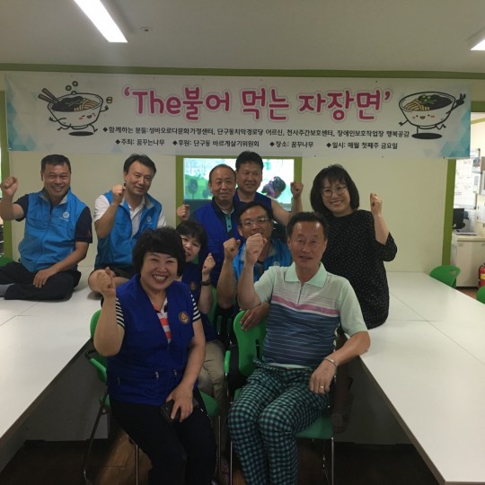 매월 금요일은 저희가 자장면 먹는 날입니다. 졸업식이나 생일날.......특별하고 기분 좋은 날에만 먹었던 자장면을 한달에 한 번 먹을 수 있게 도와주시는 "단구동 바르게 살기 위원회" 여러분께 감사드립니다. 이렇게 더운 날 자장면을 준비해주신 위원분들과 저희 기관에 달려와서 함께 자장면을 나눠 드신 치악노인정어르신들, 행복공감,단구동자치센터 직원분들.......... 덕분에 더불어 먹는 자장면이 맛있습니다. 두번씩이나 먹을 만큼!!!!!!!!!!!! 맛있는 자장면~~~~~~~~ 기쁨을 함께 나누면 두배가 된다지요? 자장면도 더불어 먹으면 맛이 두배!!
