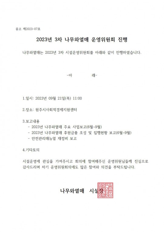 2023년 3차 나무와열매 운영위원회 진행