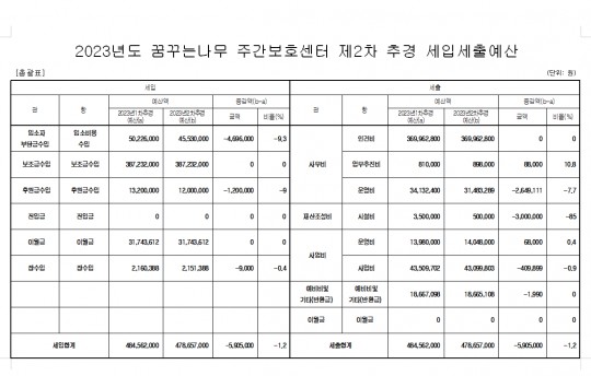 꿈꾸는나무 주간보호센터 2023년 제2차 추가경정예산 공고