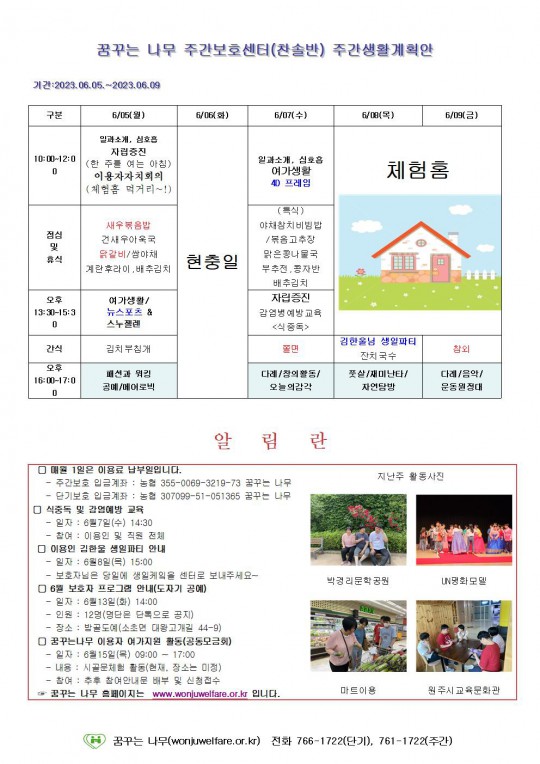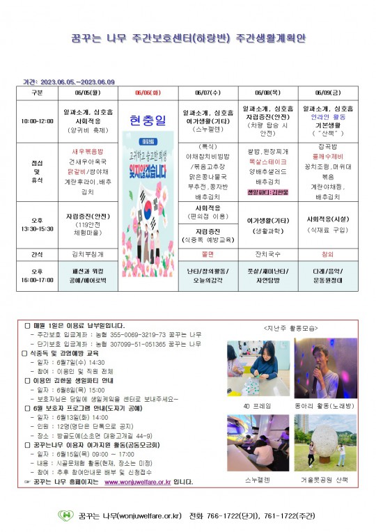 주간계획안(찬솔/하랑/윤슬/라온) 2023.06.05~