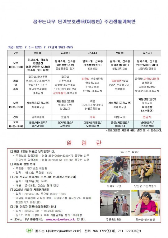 주간계획안(이룸/새길)2023.07.03~