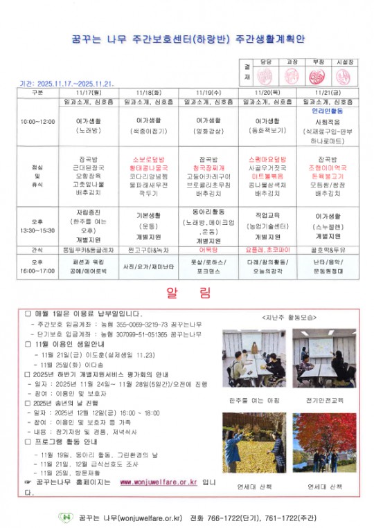 찬솔, 윤슬, 하랑, 라온 주간계획안입니다(2025.11.17~2025.11.21)