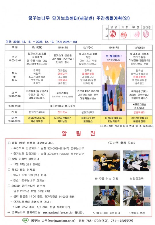 이룸반 새길반 주간계획안(2025.12.15~2025.12.19)
