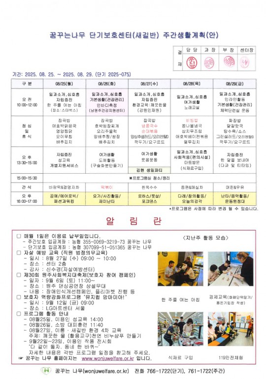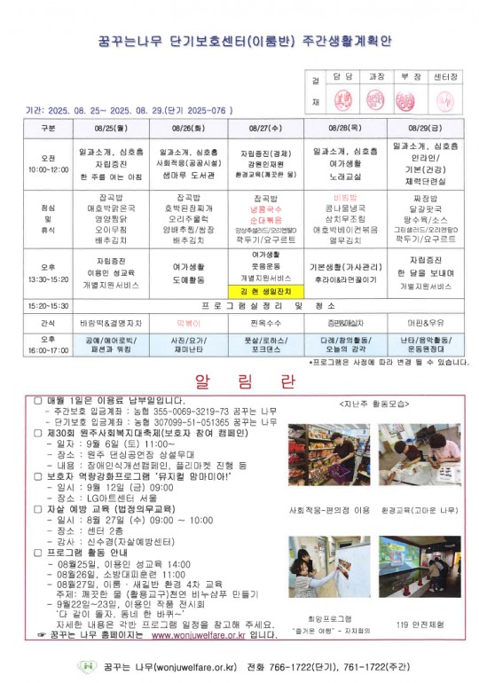 이룸, 새길 주간계획안입니다.(2025.08.25~08.29)